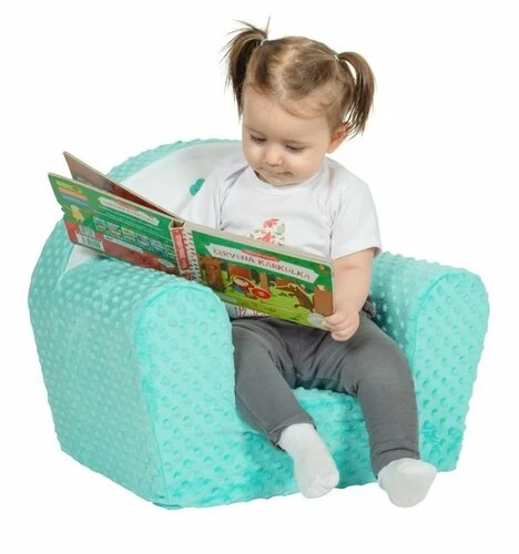 Toto měkoučké, pohodlné a mátově zelené křesílko, zdobí na opěradle Minky Liška a udělá radost všem malým dětem, neboť s ním zažijí spousty legrace při hraní i pohody při odpočinku.