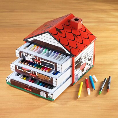 Tento domeček/chaloupka obsahuje vše potřebné pro malování, kreslení a psaní.