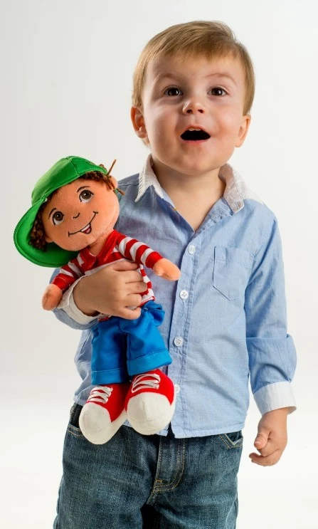 Rozkošně střapatý klučina se zelenou kšiltovkou, je celý hadrový a bude si rozumět s holčičkou i chlapečkem od narození až do školních let. Povídá české básničky a zpívá české písničky.