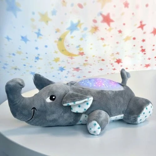 Nejen pro děťátka, která hůře usínají, je tu tento plyšový sloník, který přemění dětský pokojíček na kouzelnou galaxii plnou barevných hvězdiček s měsícem.