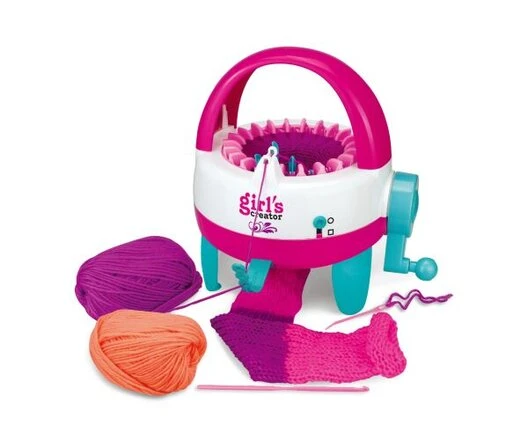 Pro šikovné dívky a parádnice, je tu tento mlýnek na pletení, s kterým si může uplést stylové doplňky, jako např. šálu, čepici, rukávník, nákrčník, povlak na polštář, deku, atd... Stačí jen nachystat vlnu a otáčet klikou.