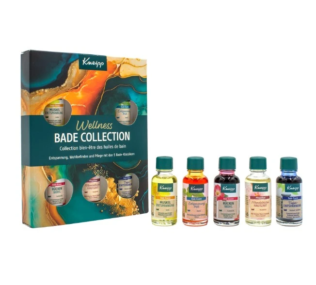 Sada obsahuje 5 olejů lisovaných za studena, pro teplé domácí lázně a wellness:
